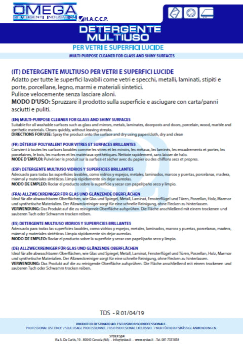 Detergente Multiuso Vetri e Superfici Sydex Omega 750ml x 12 Pezzi