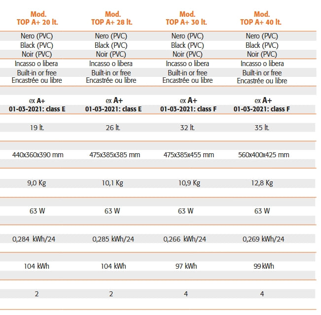 - Modello Top A+ 28lt: LxHxP: 38,5x47,5x38,5cm