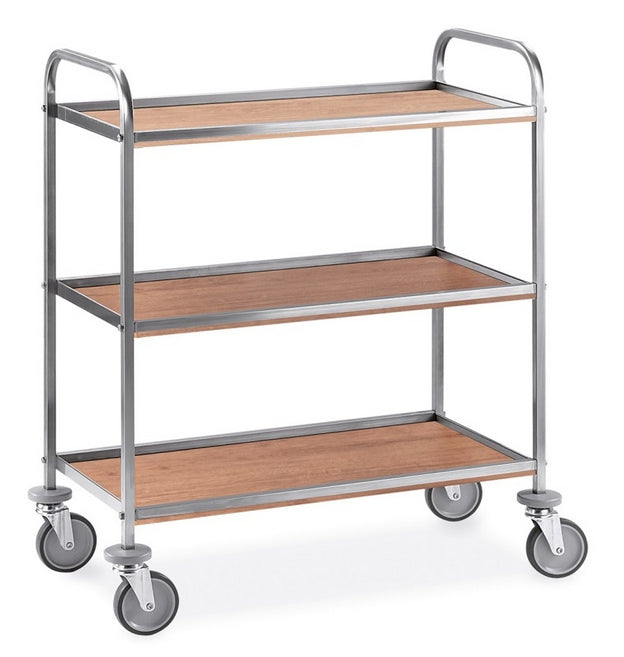 Carrello per Ristorazione in Acciaio a 3 Piani in legno rifinito Metalcarrelli