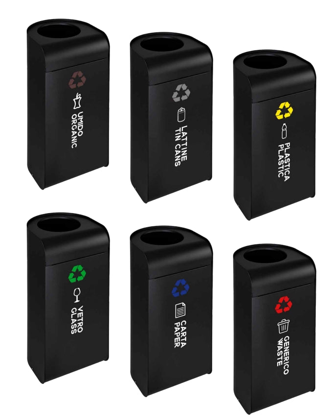 Contenitore Raccolta Differenziata Coperchio Basculante Metallo Nero