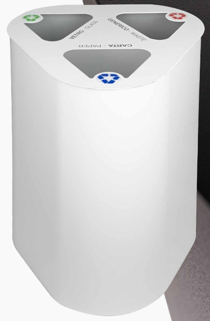 Contenitore Raccolta Differenziata In Metallo Bianco a 3 Sezioni