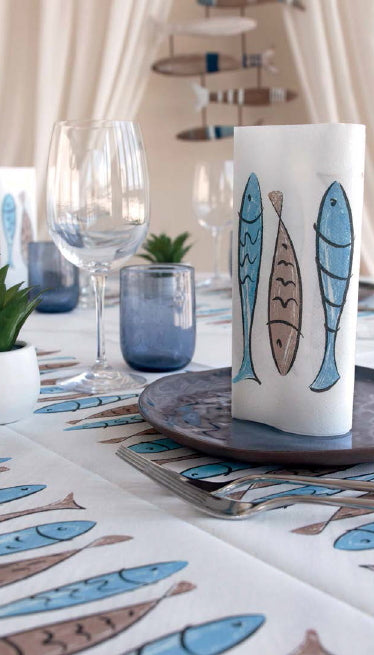 Tovaglia coprimacchia ecocompostabile 100% da 50gr. di dimensioni 100x100cm linea Mono modello Alici colore Azzurro