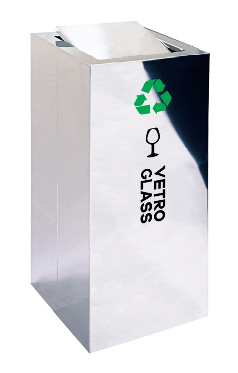 Contenitore raccolta differenziata in acciaio inox lucido con coperchio girevole e anello reggisacco ideale per tutti gli esercizi commerciali, hotel, studi medici, comunità, strutture sanitarie, sale ricevimenti, bar, ristoranti, pizzerie, centri commerciali, alberghi ecc...