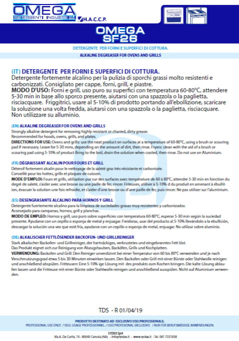 Detergente Forni e Cappe Sydex Omega SF26 5kg x 4 Pezzi