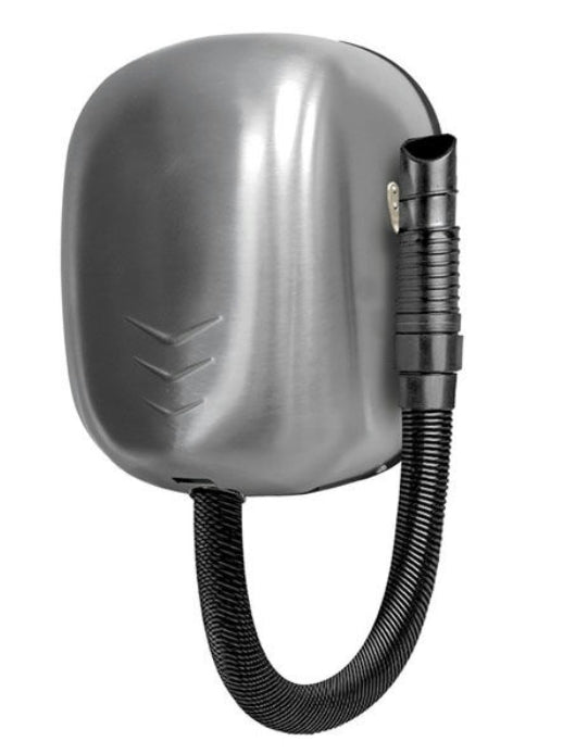 Scocca in polipropilene bianco/inox bianco/ inox brillante/inox satinato; motore a spazzola con potenza totale 1.100 W; potenza motore: 550 W; Potenza resistenza: 550 W; voltaggio: 220-240 V - Frequenza: 50-60 Hz; doppio termostato di sicurezza incluso; accensione a pulsante; asciugatura temporizzata (30 sec.-3 min.); tubo estensibile antistrappo (L: 60 - 120 cm); isolamento/grado protezione elettrica: Classe I-IP20; ideale in location ad alto traffico d’utenza.