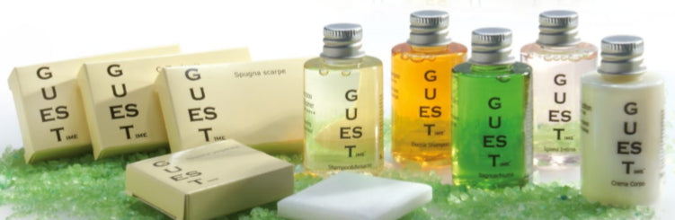 La linea di cortesia per hotel Dolcos Guestime è riservata agli alberghi, b&b e strutture ricettive più esigenti. I flaconi sono proposti anche nella pregiata versione quadra e si tratta di prodotti rigorosamente made in Italy arricchiti con estratti naturali rivitalizzanti.
