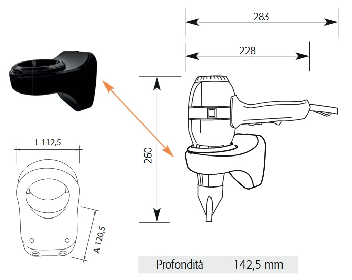 • Cavo a spirale tra la base a muro e il phon, lunghezza 60/120 cm